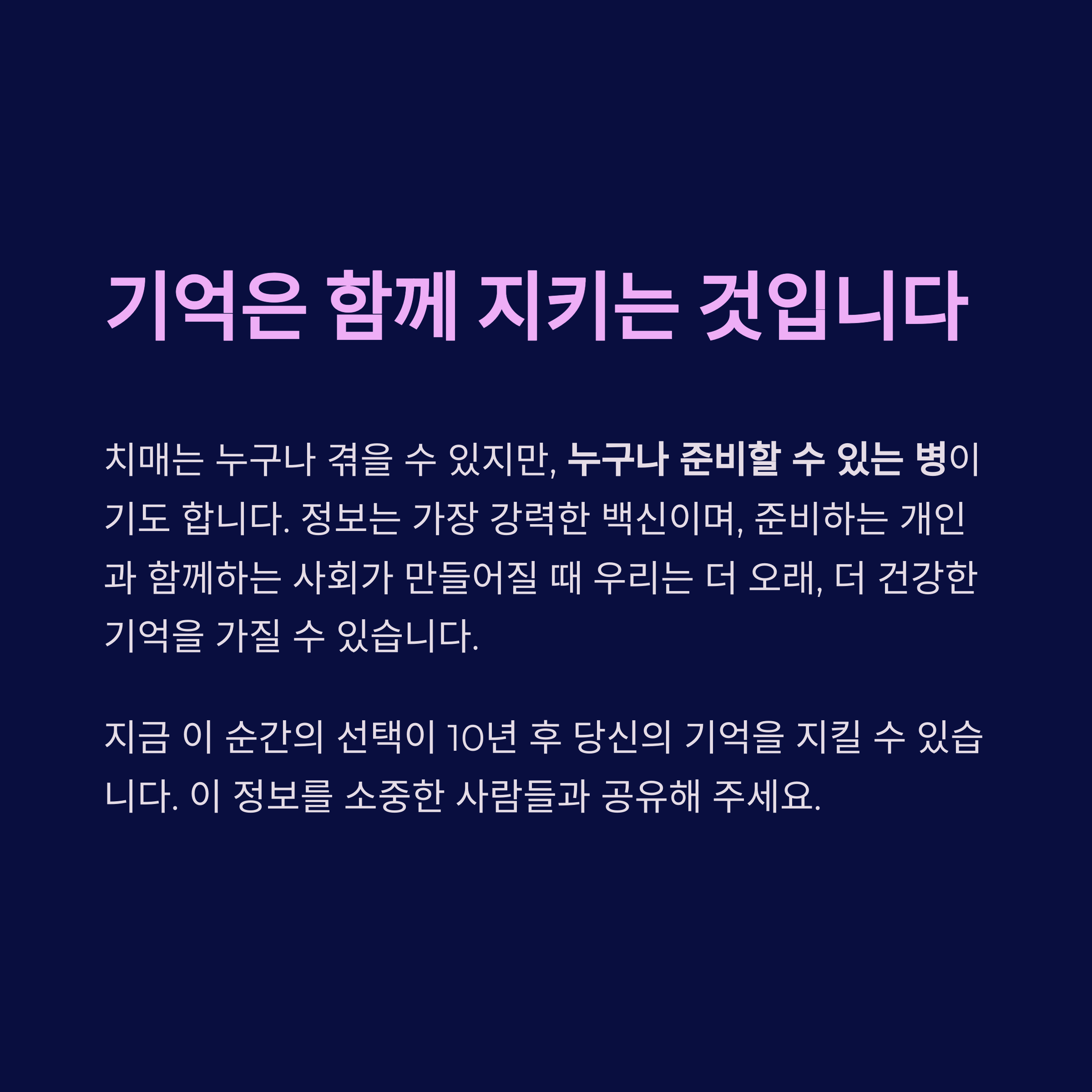 치매는 **개인 질환을 넘어선 ‘사회적 현상’**이 되었습니다.
